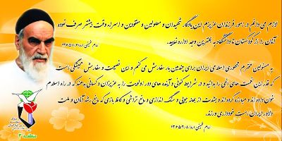 لازم می دانم در امور فرزندان عزیزم این یادگار شهیدان و معلولین و مفقودین و اسراء وقت بیشتر نموده آنان را از کودکستان تا دانشگاه به بهترین وجه اداره نمایید. فرمان حضرت امام خمینی(ره) در تاریخ 8/2/1356