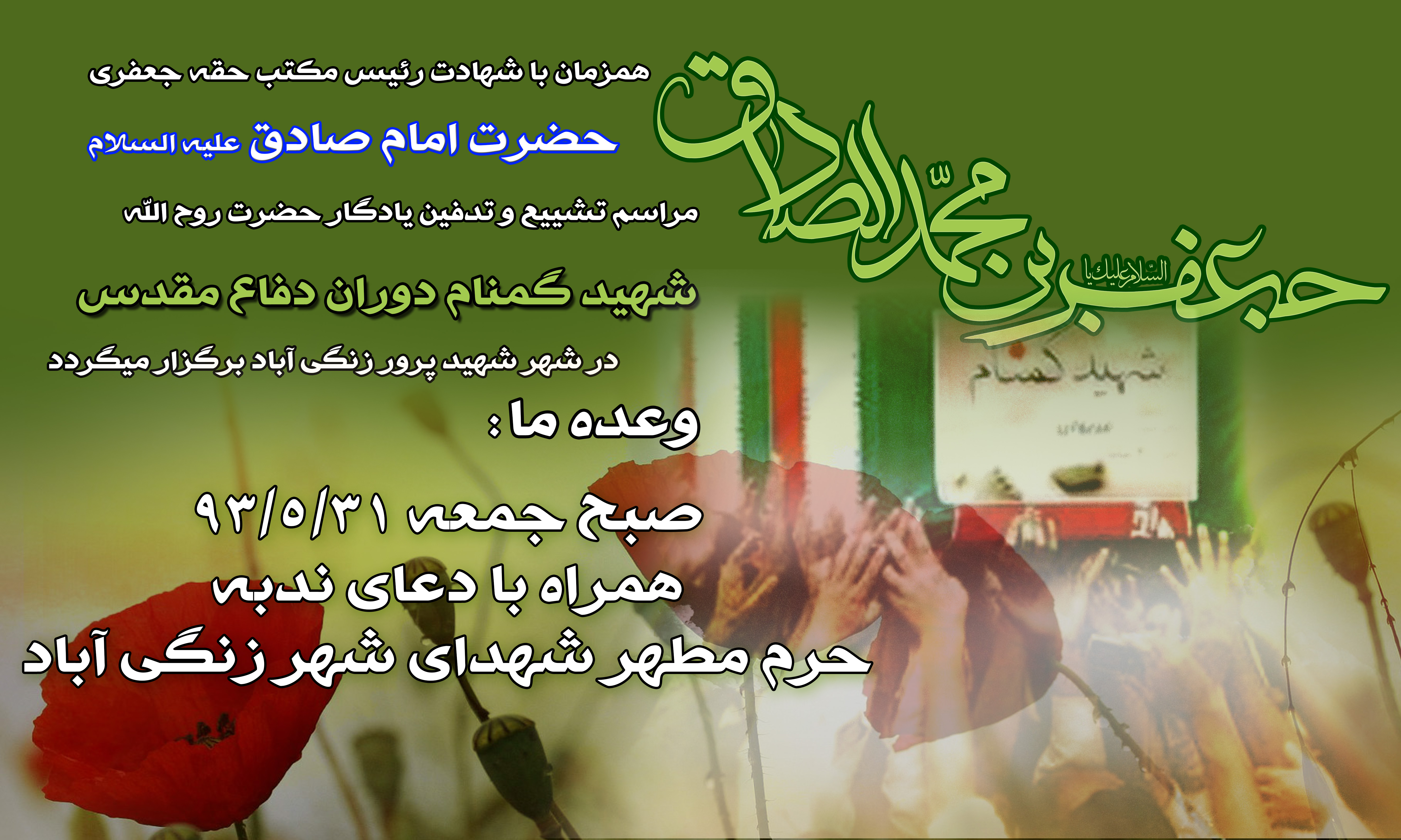 به گزارش پایگاه فرهنگی و اطلاع رسانی مفقودین و شهدای گمنام، مدیرکل حفظ آثار و نشر ارزشهای دفاع مقدس استان کرمان امروز در جمع خبرنگاران گفت : همزمان با ایام شهادت امام جعفر صادق (ع)، دو شهید گمنام در بروات از توابع شهرستان بم و یک شهید گمنام نیز در زنگیآباد از توابع شهرستان کرمان آخر همین هفته تشییع و تدفین میشوند.